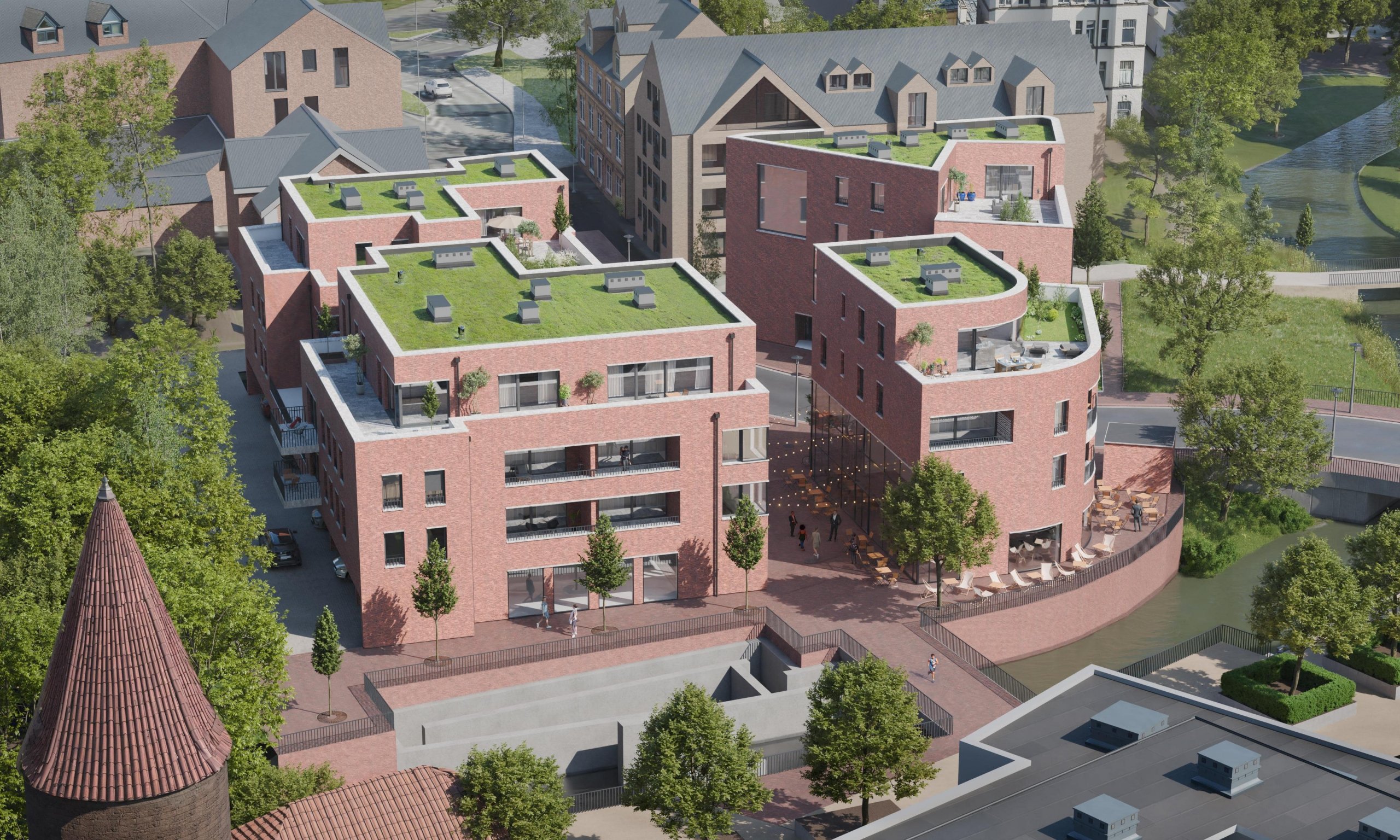 Die einmalige High-Class-Lage an der ehemaligen Wassermühle, zwischen den Aa-Terrassen am Flussufer, dem idyllischen Stadtpark und der Innenstadt, ist nicht zu übertreffen. In dem neu erschaffenen Mühlenareal, wird nun das „Gewinnerkonzept“ des städtischen Architekturwettbewerbes in die Tat umgesetzt.