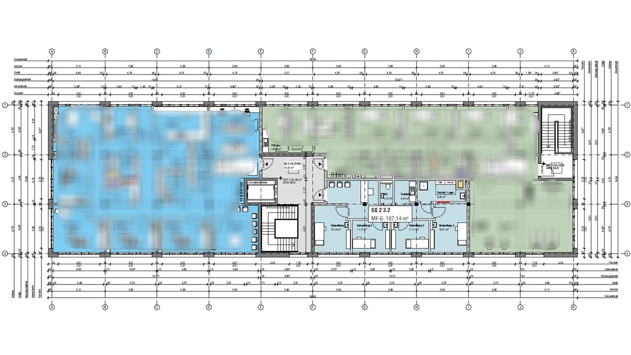 Es wird Ihnen als Mieter eine flexible Grundrissgestaltung nach Ihren individuellen Wünschen angeboten. Jede Etage hat eine Mietfläche von ca. 600 m² und ist ab ca. 70 m² teilbar in bis zu vier Mieteinheiten. Spezielle technische Ausstattung für diverse Mieterbedürfnisse sind möglich.