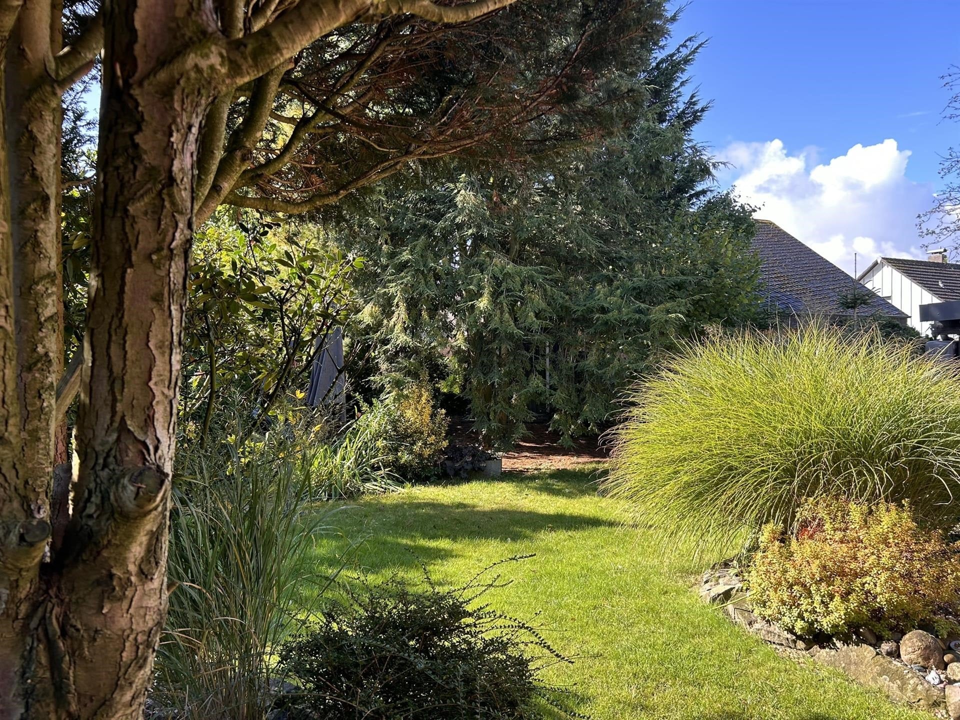 Der Garten ist ein einladender Rückzugsort für Naturfreunde und Familien. Er ist nicht nur schön angelegt und nahezu uneinsehbar, sondern auch gut zu nutzen: Eine große Terrasse mit einer 2024 erneuerten Markise lädt zu entspannten Stunden im Freien ein. Ob Grillabende, Spiele mit den Kindern oder einfach nur Ruhe und Erholung – dieser Garten erfüllt alle Wünsche.