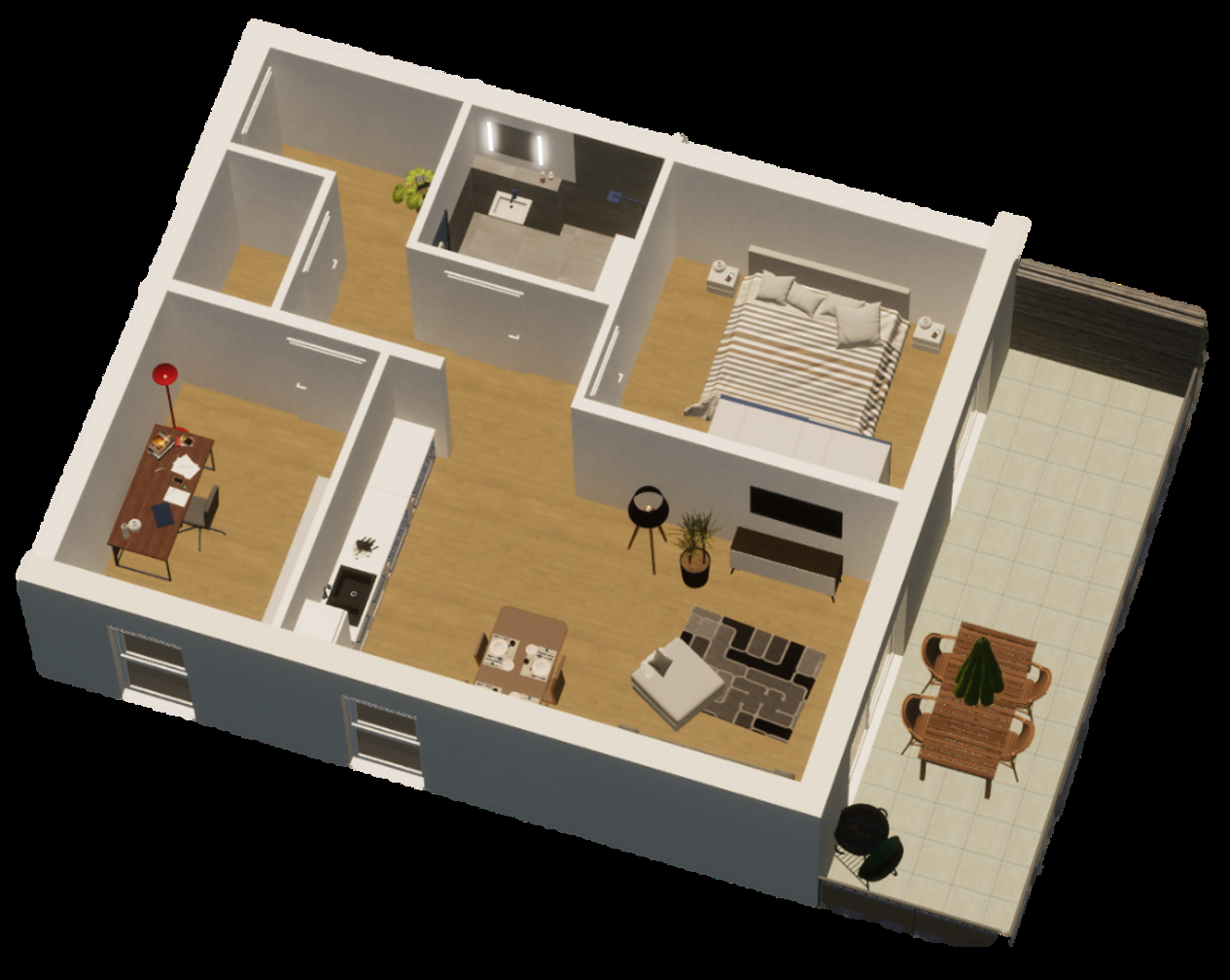 - Bodenbelag: Fliesen / Vinyl