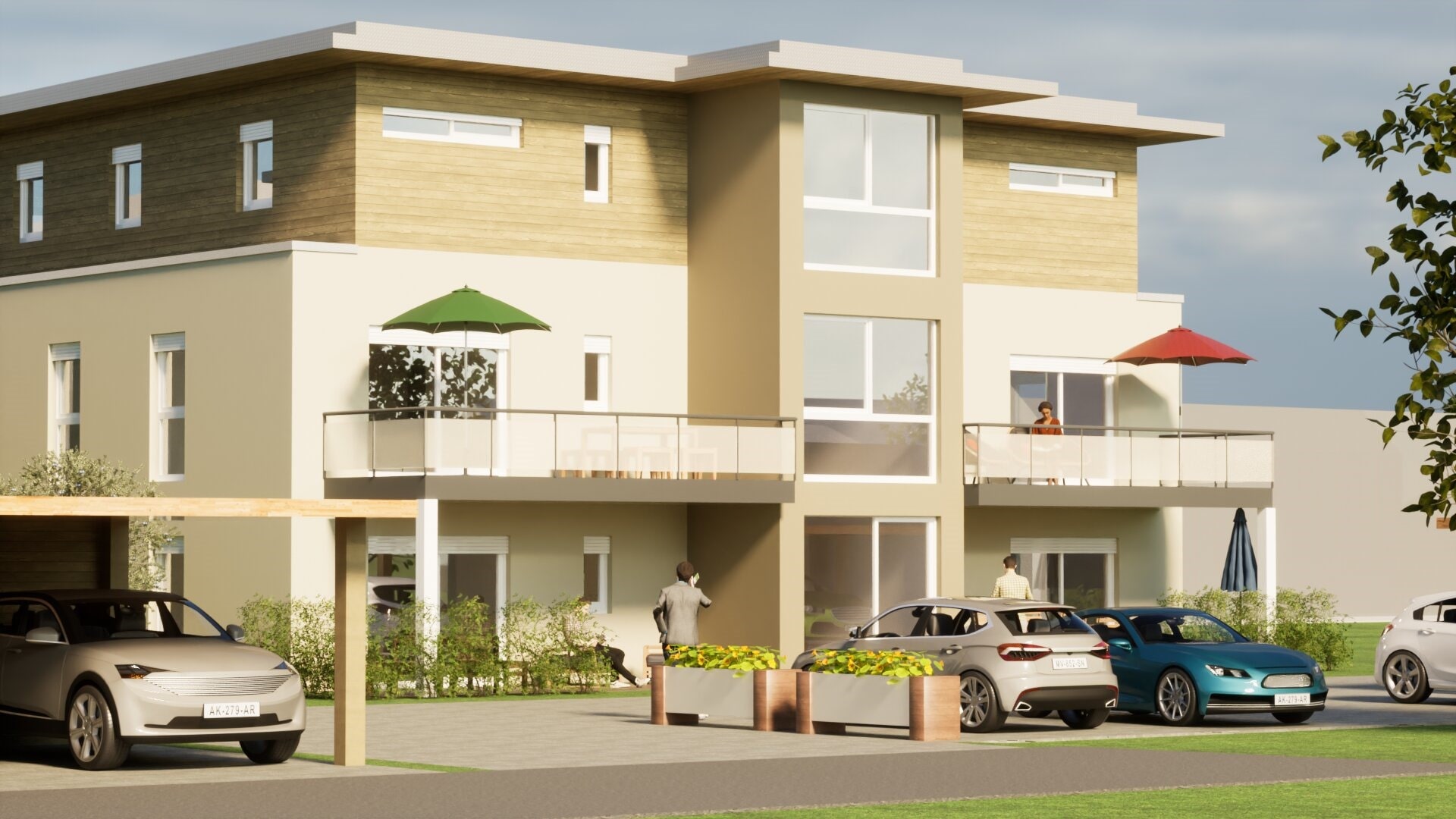 Stellplätze und Carports stehen zusätzlich zum Kauf zur Verfügung.
