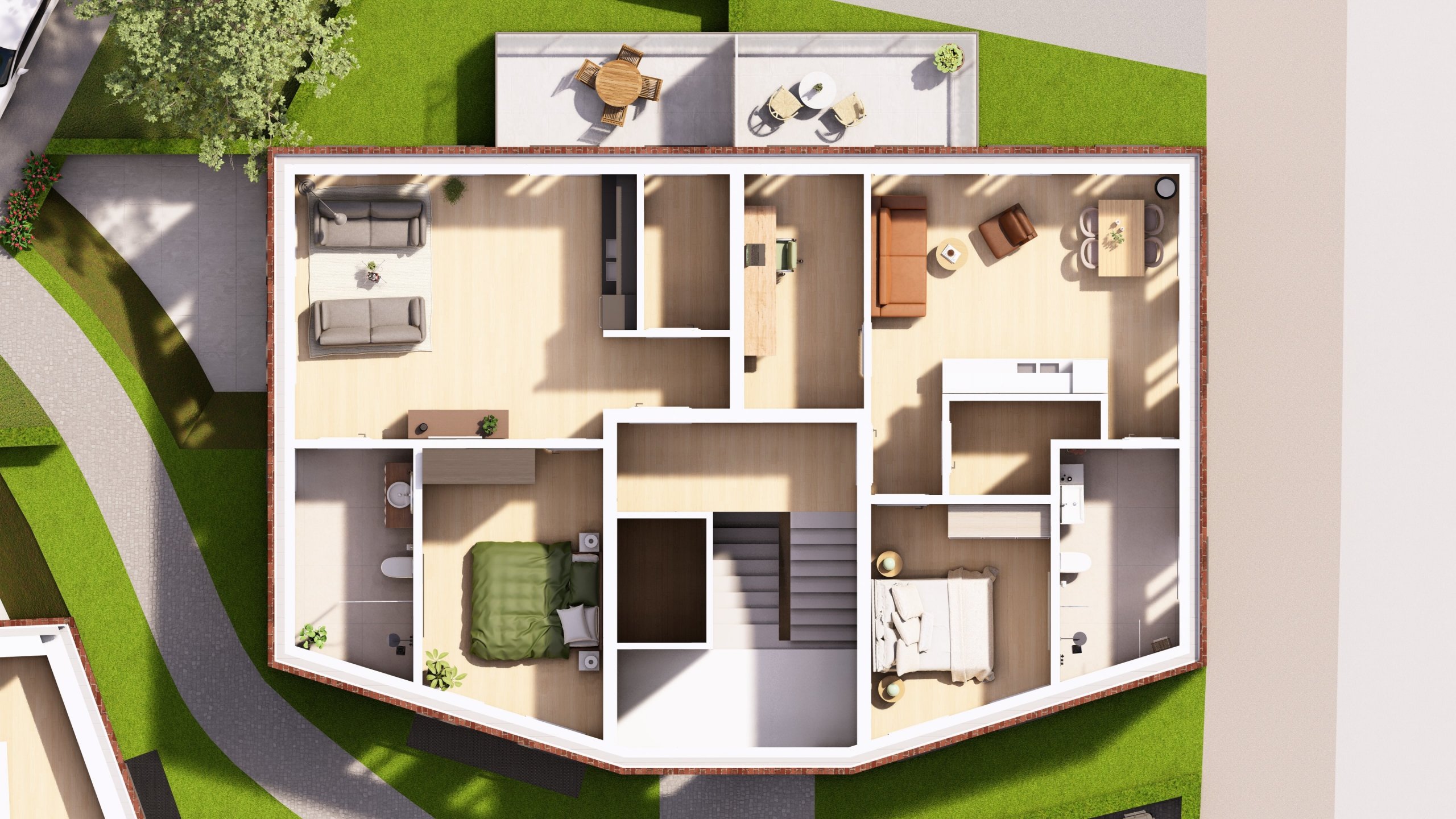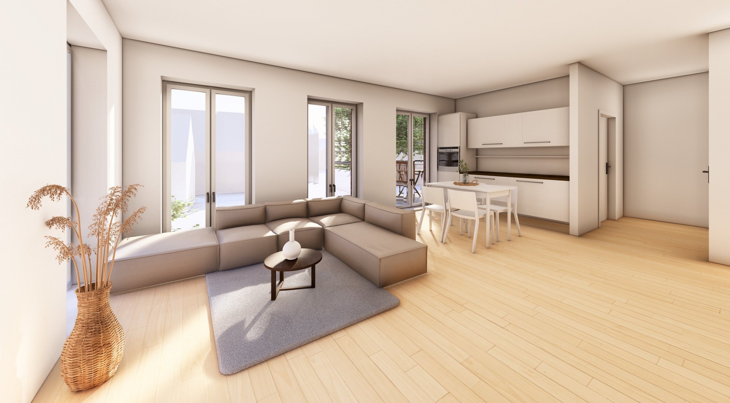 Die Architektur überzeugt durch eine klare und zeitlose Gestaltung. Bodentiefe Fenster schaffen helle, freundliche Räume und unterstreichen den modernen Charakter.