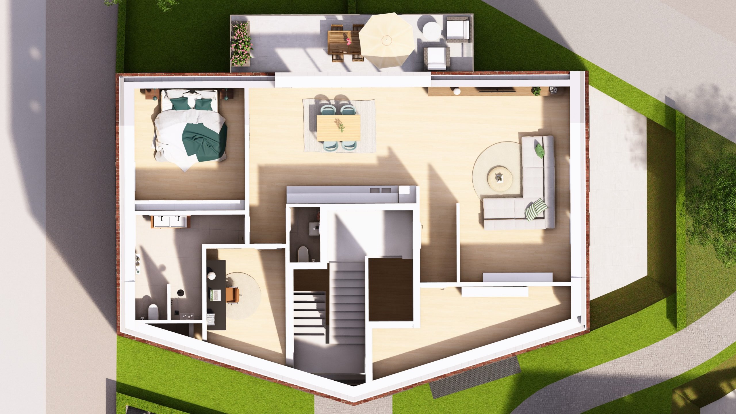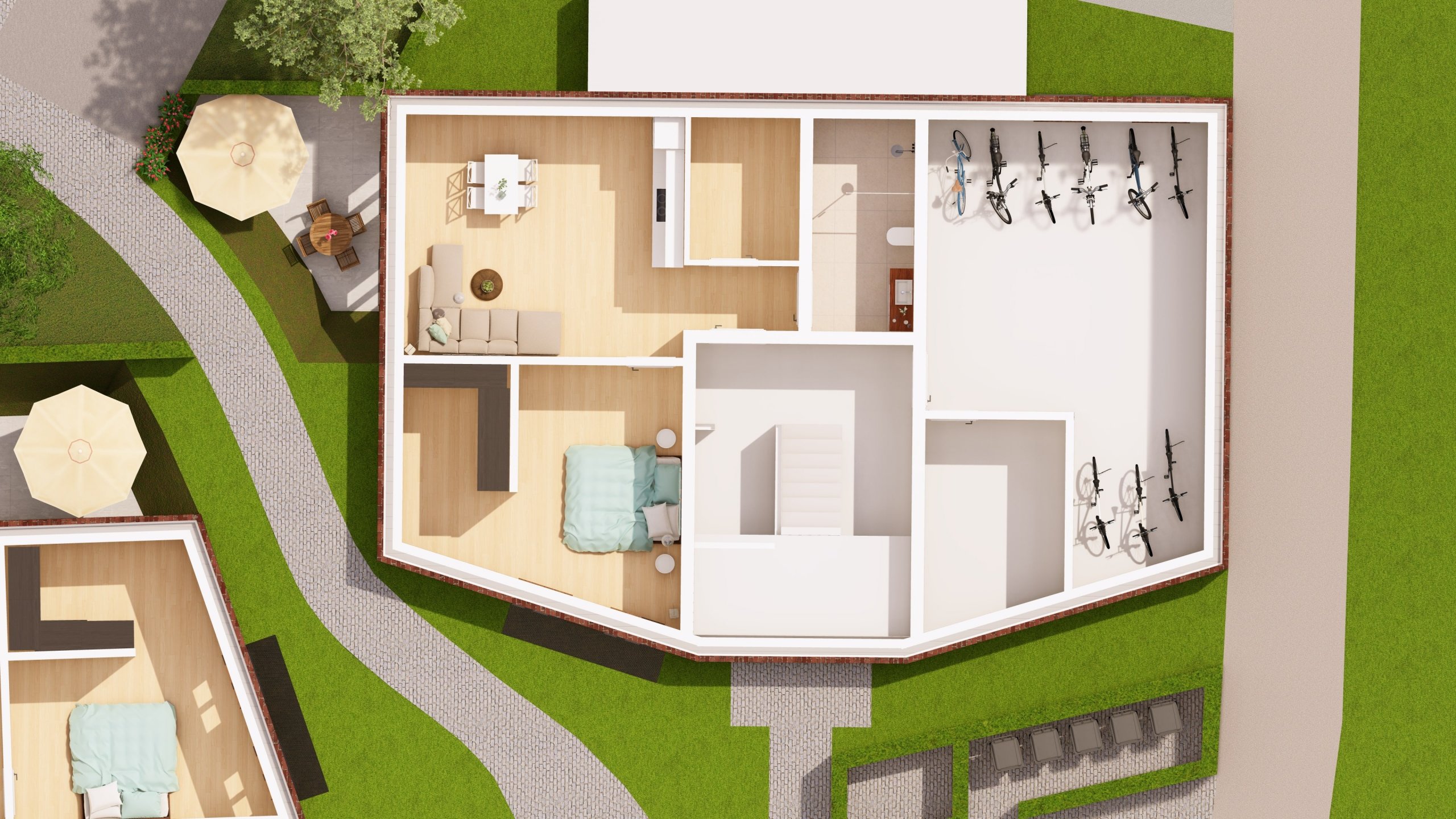 Ergänzt wird das Angebot durch einen gemeinschaftlichen Fahrradkeller sowie einen Stellplatz direkt am Haus.
