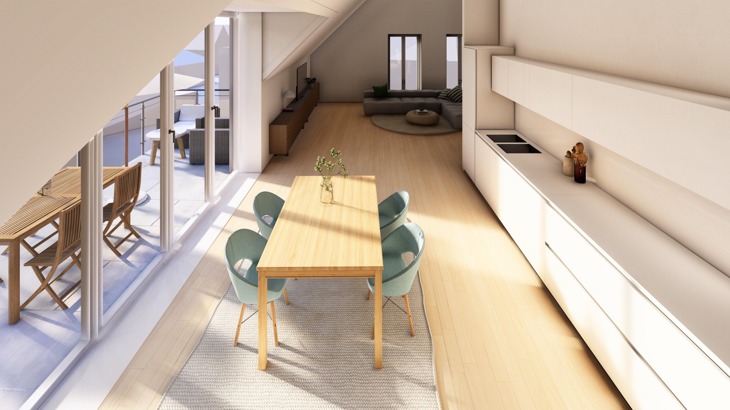 Jede Wohnung verfügt über eine eigene Freifläche in Form von Balkon, Terrasse und Dachterrasse – ein echtes Plus für Wohnkomfort und Lebensqualität.
