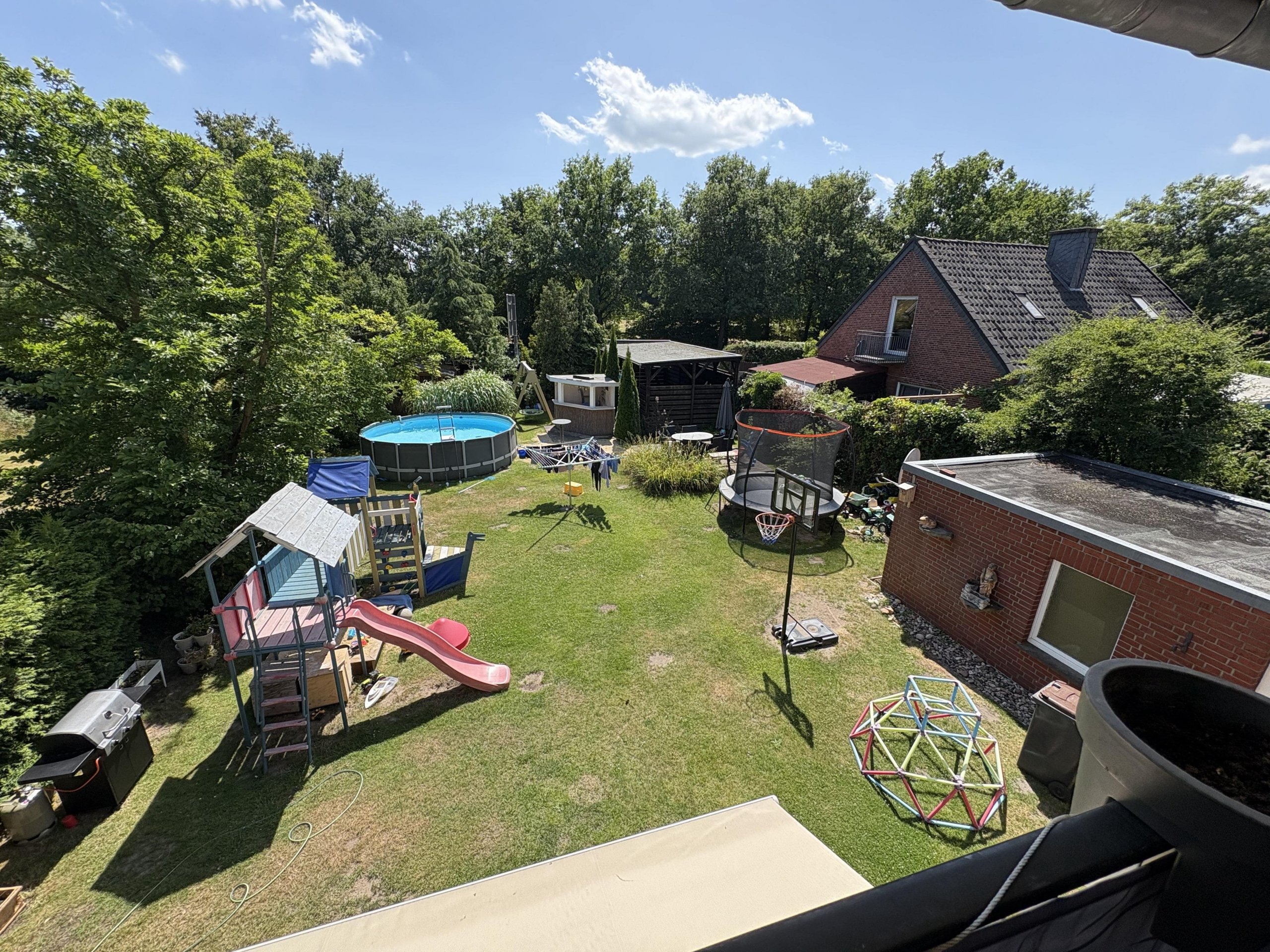 Wohn-Esszimmer, Küche, Diele, Bad, Gäste-WC, Schlafzimmer, zwei Kinderzimmer, Abst. Garder., Terrasse